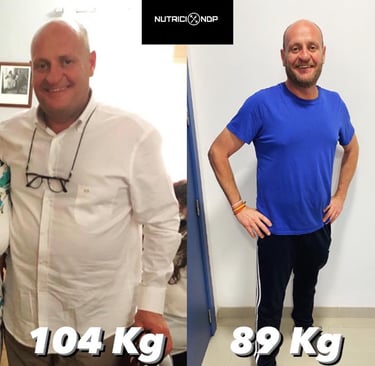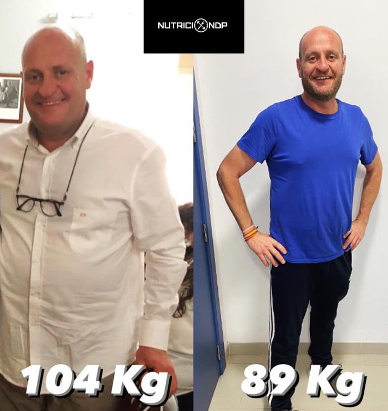 Una imagen vale más que mil palabras. Aquí os enseñamos el espectacular cambio de uno de mis asesorados y amigo Hipólito. Empezamos con un sobrepeso de casi 104 Kg y un porcentaje de grasa en 33,8%. Tras algunos meses de trabajo, hemos logrado bajar el peso a 89,7 Kg y un porcentaje de grasa menor al 26%. La receta es sencilla: una alimentación adaptada a sus necesidades en cada momento y paciencia.
