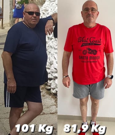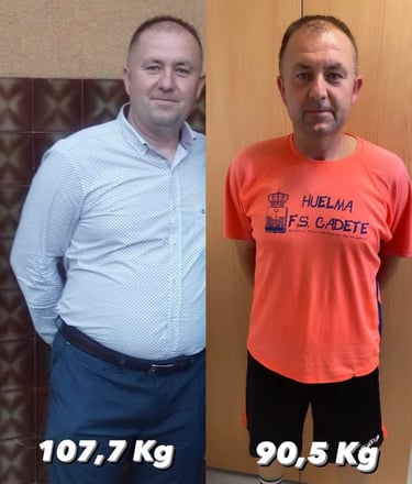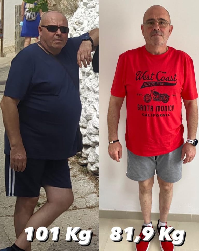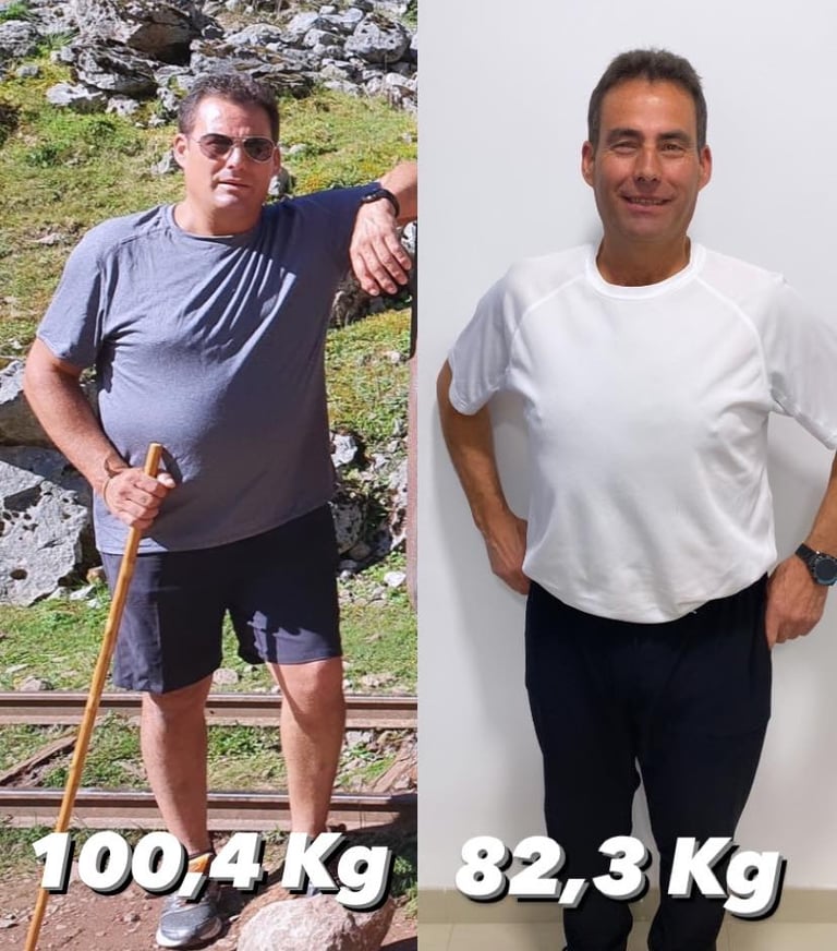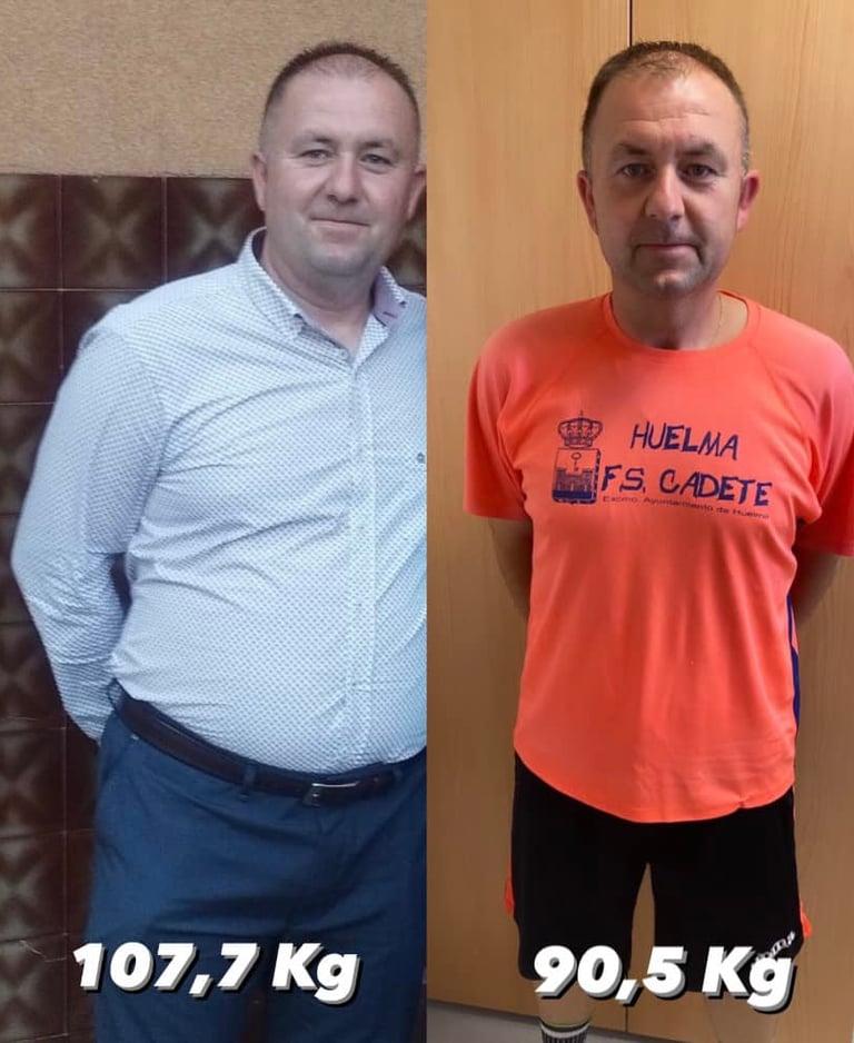 A día de hoy, hemos conseguido reducir el peso de Antonio en 82,3 Kg, teniendo actualmente un 21,8% de grasa. Y todo ello, sin hacer grandes locuras. Con Antonio ha sido muy fácil, simplemente impleméntanos el ayuno intermitente (que él, sin saber, hacia) de forma más estricta y recortamos cantidades de alimentos sobre todo a la hora de la cena. Además, él es una persona bastante nerviosa y activa, lo que ha facilitado el proceso.